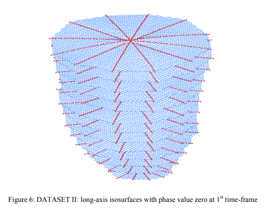 Tags are non-invasive features induced in the heart muscle that enable the tracking of heart motion. Each tag line, in fact, corresponds to a 3D tag surface that deforms with the heart muscle during the cardiac cycle. Tracking of tag surfaces deformation is useful for the analysis of left ventricular motion. Cardiac material markers (Kerwin et al, MIA, 1997) can be obtained from the intersections of orthogonal surfaces which can be reconstructed from short- and long-axis tagged images. The proposed method uses Harmonic Phase (HARP) method for tracking tag lines corresponding to a specific