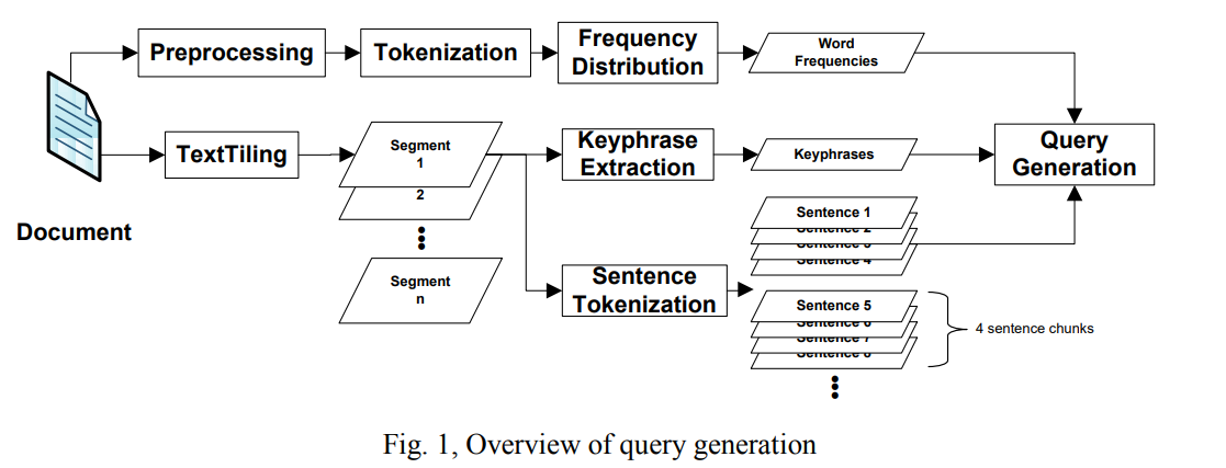 This paper details the approach of implementing an English plagiarism source retrieval system to be presented at PAN 2013. The system uses the TextTiling algorithm to break a given document into segments that are centered around certain topics within the document. From these segments, keyphrases are generated using the KPMiner keyphrase extraction system. These keyphrases and segments are then used in generating queries indicative of the segment, and consequently the document. The queries are submitted to ChatNoir for finding plagiarism sources in the ClueWeb09 corpus from which the pan13