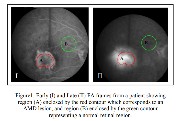 Age-related macular degeneration (AMD) is a major cause of blindness and visual impairment in older adults. The wet form of the disease is characterized by abnormal blood vessels forming a choroidal neovascular membrane (CNV), that result in destruction of normal architecture of the retina. Current evaluation and follow up of wet AMD include subjective evaluation of Fluorescein Angiograms (FA) to determine the activity of the lesion and monitor the progression or regression of the disease. However, this subjective evaluation prevents accurate monitoring of the disease progression or regression