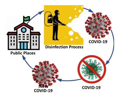 The aim of this paper is to introduce an improved strategy for controlling COVID-19 and other pandemic episodes as an environmental disinfection culture for public places. The scheduling aims at achieving the best utilization of the available working day-time hours, which is calculated as the total consumed disinfection times minus the total loosed transportation times. The proposed problem in network optimization identifies a disinfection group who is likely to select a route to reach a subset of predetermined public places to be regularly disinfected with the most utilization of the
