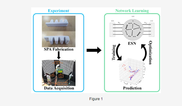 Modeling of soft robotics systems proves to be an extremely difficult task, due to the large deformation of the soft materials used to make such robots. Reliable and accurate models are necessary for the control task of these soft robots. In this paper, a data-driven approach using machine learning is presented to model the kinematics of Soft Pneumatic Actuators (SPAs). An Echo State Network (ESN) architecture is used to predict the SPA’s tip position in 3 axes. Initially, data from actual 3D printed SPAs is obtained to build a training dataset for the network. Irregularintervals pressure