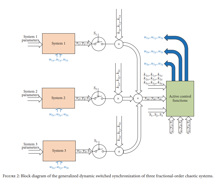This paper proposes a novel generalized switched synchronization scheme among n fractional-order chaotic systems with various operatingmodes. Digital dynamic switches and dynamic scaling factors are employed, which offermany new capabilities. Dynamic switches determine the role of each system as a master or a slave. A system can either have a fixed role throughout the simulation time (static switching) or switch its role one or more times (dynamic switching). Dynamic scaling factors are used for each state variable of the master system. Such scaling factors control whether the master is a