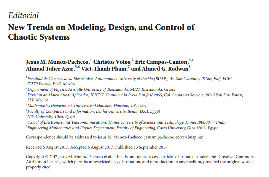New Trends on Modeling, Design, and Control of Chaotic Systems