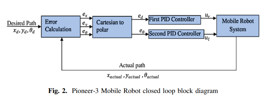 This paper represents the control of the Pioneer-3 Mobile Robot as a complex non-linear system which provides an object for research nonlinear system kinematics and dynamics analysis. In this paper, the system modeling and simulation is divided into two main parts. The first part is the modeling and simulation using MATLAB and the second part is the whole mechanical design and its characteristics as a function of the motor speed and the torque depending on the system using Virtual Robot Environment Program (V-REP). The study uses Proportional–Integral–Derivative (PID) and Fractional Order PID