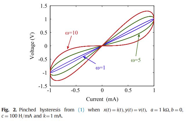 Abstract Pinched hysteresis is considered to be a signature of the existence of memristance. However, here we report on a model that exhibits pinched hysteresis yet it may represent a nonlinear inductor or a nonlinear capacitor (both with quadratic nonlinearity) or a derivative-controlled nonlinear resistor/transconductor. Further, the lobe area of the pinched hysteresis loop in these devices has inverse-memristor characteristics; i.e. it is observed to widen rather than decline with increased operating frequency. Experimental results are provided to validate the model. © 2015 Elsevier Ltd.