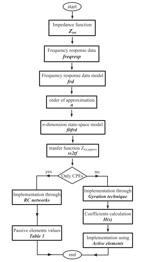 A novel procedure for the circuit implementation of the driving-point impedance of frequency-domain material models, constructed from fractional-order elements of arbitrary type and order, is introduced in this work. Following this newly introduced concept, instead of emulating separately each fractional-order element in the model under consideration, the direct emulation of the complete model can be achieved through the approximation of the total impedance function. The magnitude and phase frequency responses of the impedance function are first extracted and approximated through curve-fitting