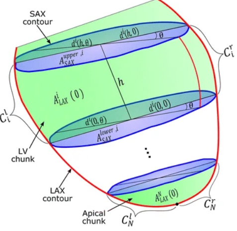 Improved estimation of the cardiac global function using combined long and short axis MRI images of the heart