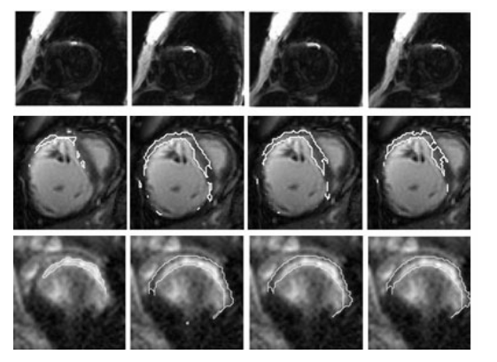 Multi-slice short-axis acquisitions of the left ventricle are fundamental for estimating the volume and mass of the left ventricle in cardiac MRI scans. Manual segmentation of the myocardium in all time frames per each cross-section is a cumbersome task. Therefore, automatic myocardium segmentation methods are essential for cardiac functional analysis. Region growing has been proposed to segment the myocardium. Although the technique is simple and fast, non uniform intensity and low-contrast interfaces of the myocardium are major challenges of the technique that limit its use in myocardial