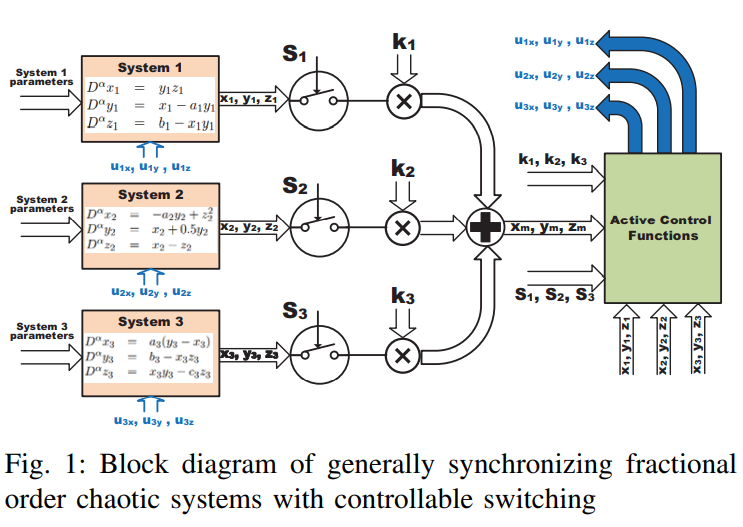 Switched active control synchronization of three fractional order chaotic systems