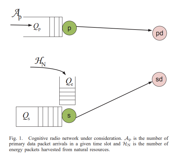 This paper investigates the maximum throughput for a rechargeable secondary user (SU) sharing the spectrum with a primary user (PU) plugged to a reliable power supply. The SU maintains a finite energy queue and harvests energy from natural resources, e.g., solar, wind and acoustic noise. We propose a probabilistic access strategy by the SU based on the number of packets at its energy queue. In particular, when the energy queue is in a certain state, the SU probabilistically uses a total number of energy packets that is at most equal to the number of packets at its energy queue. The probability