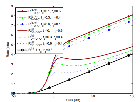 Abstract: An achievable rate region for a primary multiple access network coexisting with a secondary link of one transmitter and a corresponding receiver is analyzed. The rate region depicts the sum primary rate versus the secondary rate and is established assuming that the secondary link performs rate splitting. The achievable rate region is the union of two types of rate regions. The first type is a rate region established assuming that the secondary receiver cannot decode any primary signal, whereas the second is established assuming that the secondary receiver can decode the signal of one