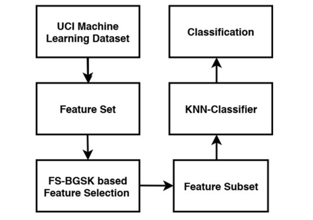 To obtain the optimal set of features in feature selection problems is the most challenging and prominent problem in machine learning. Very few human-related metaheuristic algorithms were developed and solved this type of problem. It motivated us to check the performance of recently developed gaining–sharing knowledge-based optimization algorithm (GSK), which is based on the concept of gaining and sharing knowledge of humans throughout their lifespan. It depends on two stages: beginners–intermediate gaining and sharing stage and intermediate–experts gaining and sharing stage. In this study