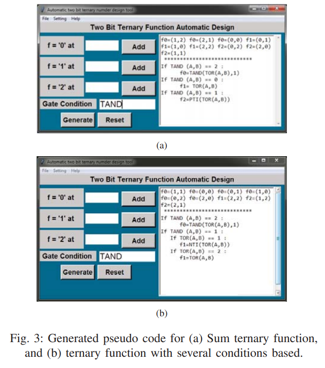 Ternary number, which attracts the research attention for its high capacity, has emerged in many applications, recently. Unlike binary numbers, two bit ternary number involves 93 = 729 different functions while two bit binary number involves only 42 = 16 different possible functions. In this paper, a novel automatic software description two bits ternary functions design tool is presented. Different examples are provided and synthesized to ternary logic circuits. Finally, the presented logic circuits are verified by SPICE simulation using carbon nano-Tube (CNTFET) transistors. © 2019 IEEE.