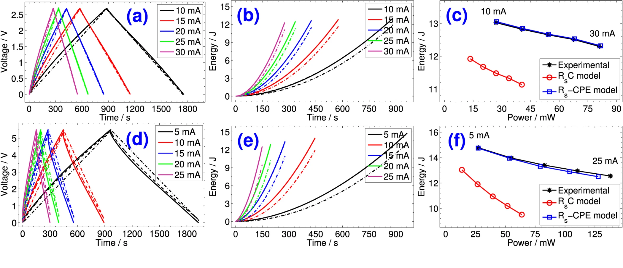 The electric characteristics of electric-double layer capacitors (EDLCs) are determined by their capacitance which is usually measured in the time domain from constant-current charging/discharging and cyclic voltammetry tests, and from the frequency domain using nonlinear least-squares fitting of spectral impedance. The time-voltage and current-voltage profiles from the first two techniques are commonly treated by assuming ideal S s C behavior in spite of the nonlinear response of the device, which in turn provides inaccurate values for its characteristic metrics. In this paper we revisit the