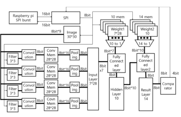 Convolutional Neural Networks (CNNs) for Artificial Intelligence (AI) algorithms have been widely used in many applications especially for image recognition. However, the growth in CNN-based image recognition applications raised challenge in executing millions of Multiply and Accumulate (MAC) operations in the state-of-The-Art CNNs. Therefore, GPUs, FPGAs, and ASICs are the feasible solutions for balancing processing speed and power consumption. In this paper, we propose an efficient hardware architecture for CNN that provides high speed, low power, and small area targeting ASIC implementation