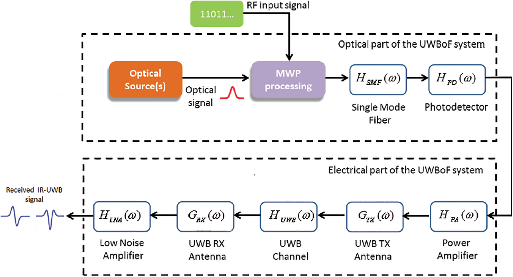 This paper presents a radio optical network simulation tool (RONST) for modeling optical-wireless systems. For a typical optical and electrical chain environment, performance should be optimized concurrently before system implementation. As a result, simulating such systems turns out to be a multidisciplinary problem. The governing equations are incompatible with co-simulation in the traditional environments of existing software (SW) packages. The ultra-wideband (UWB) technology is an ideal candidate for providing high-speed short-range access for wireless services. The limited wireless reach